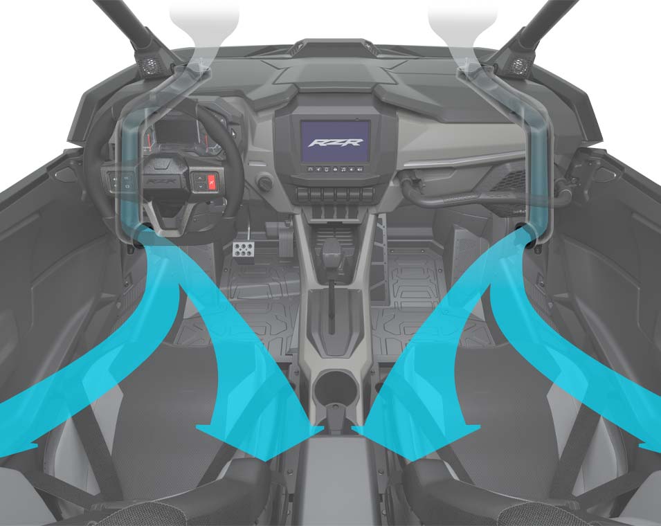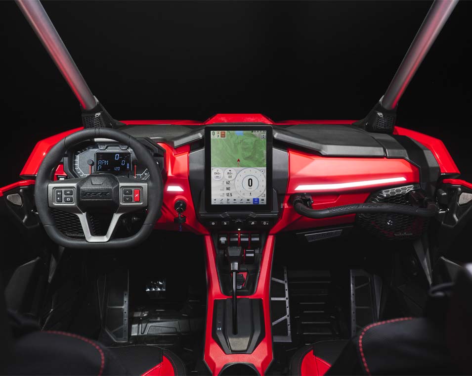 Winning starts from within, and RZR Pro R is no exception. Its interior is meticulously designed with more comfort and convenience, empowering you to ride further, drive harder, and finish in first place.