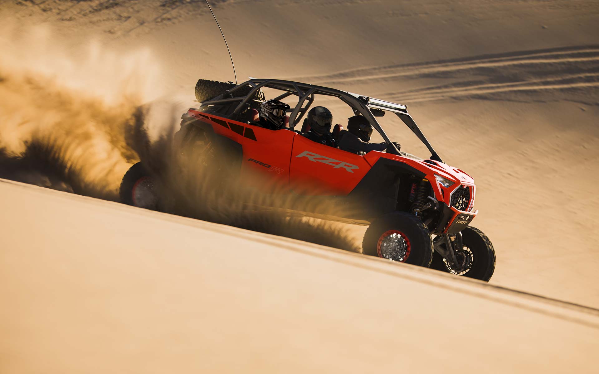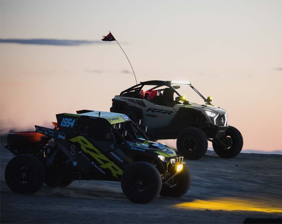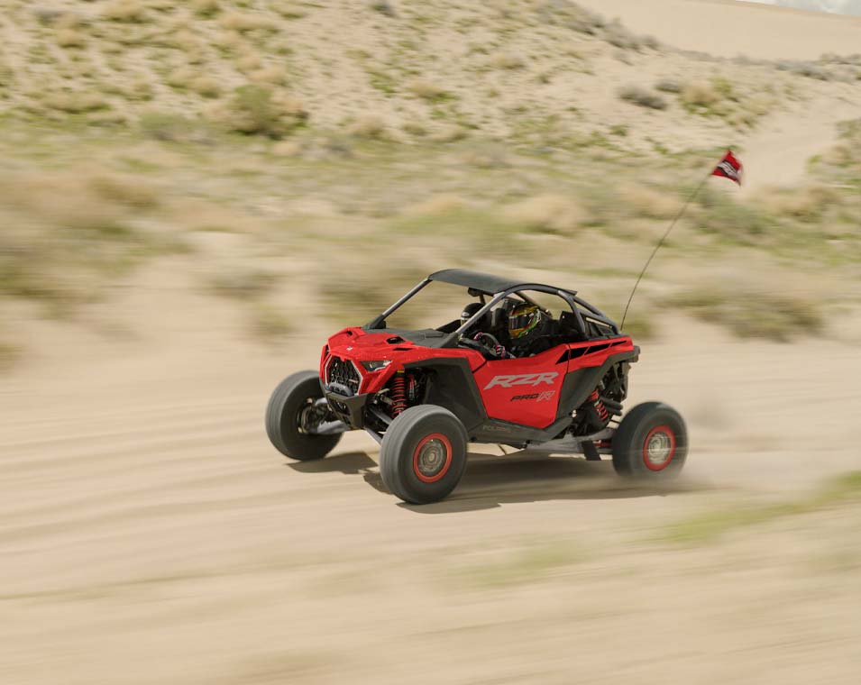 Out-thrill them all with an off-road beast designed to dominate. RZR Pro R delivers heart-pounding performance to defy deserts, conquer dunes and break records off road. Never place second again. With RZR Pro R, you always win.